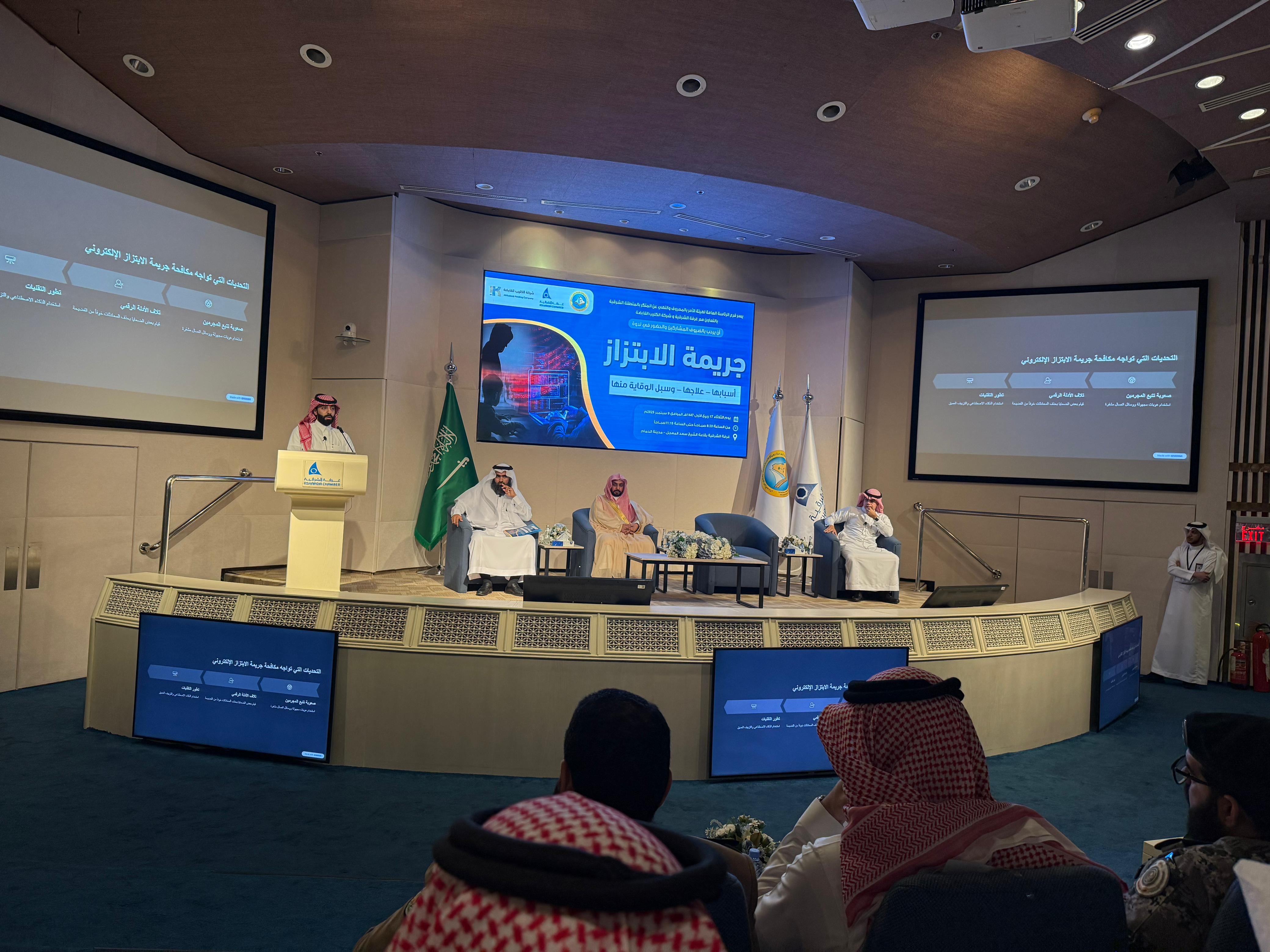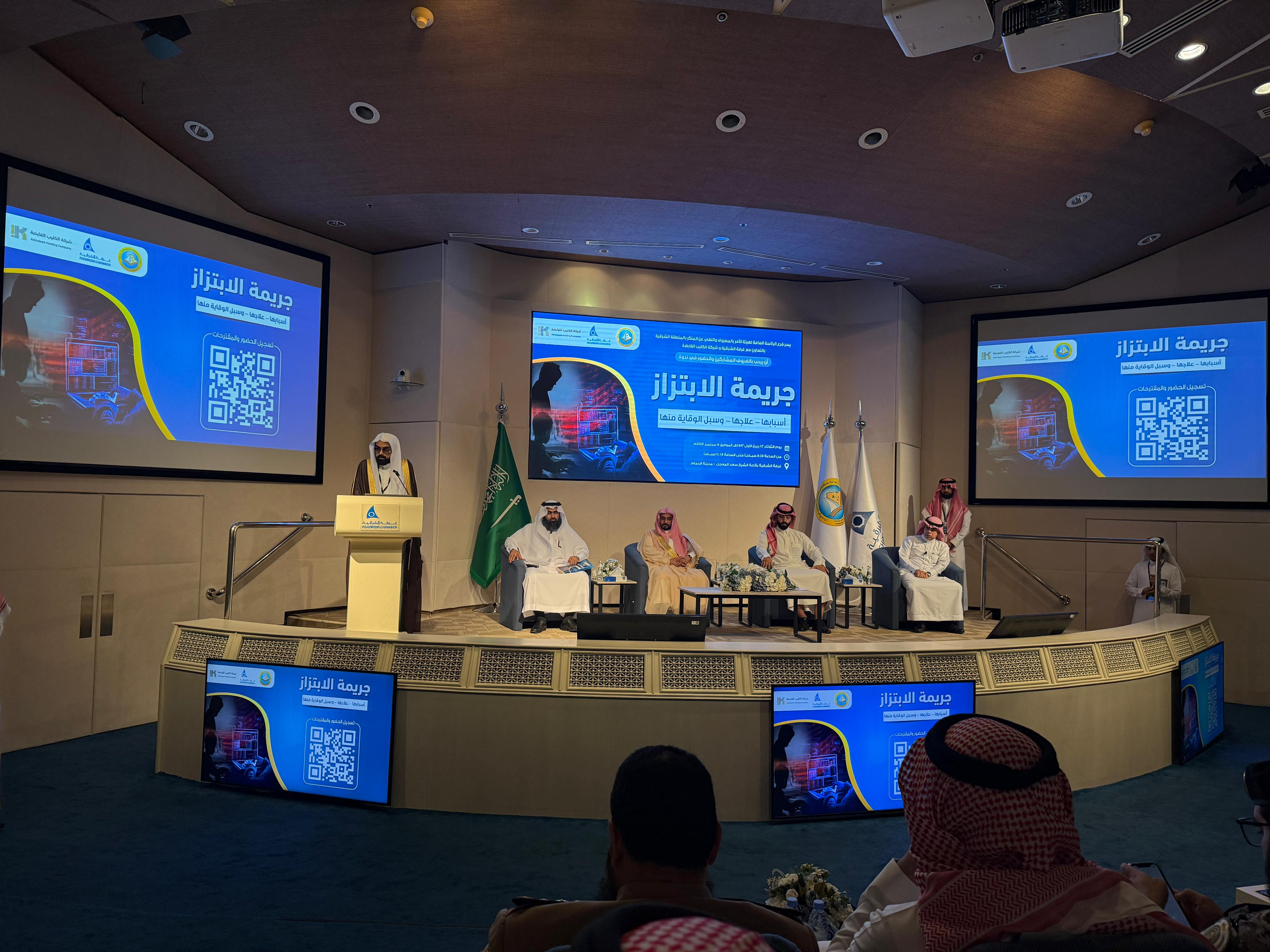 في إطار جهود التوعية المجتمعية، نظم فرع الرئاسة العامة لهيئة الأمر بالمعروف والنهي عن المنكر بالمنطقة الشرقية، ندوة بعنوان: "جريمة الابتزاز.. علاجها وسبل الوقاية منها"، وذلك بالشراكة مع النيابة العامة، وإدارة التعليم، ومجمع إرادة والصحة النفسية، وبالتعاون مع شركة الكليب القابضة، واستضافتها قاعة الغرفة التجارية بالمنطقة.